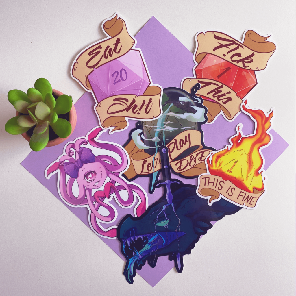 Nerdy stickers and stationery designed especially for tabletop fans—whether it’s your beloved GM or that one player who absolutely cannot roll above a 5. Cute, clever, and deeply relatable for TTRPG tables everywhere.